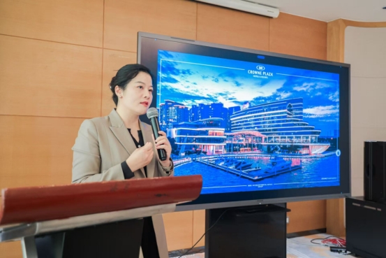 除政策解讀外,活動還設置了企業服務宣講環節,為參會企業搭建資源對接平臺。中茵皇冠假日酒店相關負責人介紹了其場地優勢、服務團隊配置及保障能力,為企業舉辦會議活動提供場地選擇參考;天虹商場相關負責人則聚焦企業年會需求,推介了相關服務及專屬優惠,助力企業降低辦會成本。