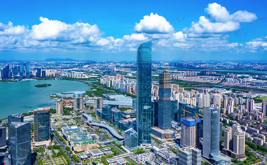 金雞湖商務區位于中國(江蘇)自貿區蘇州片區核心區,占地面積66.07平方公里,現有人口58.9萬人,經營主體7.8萬家。它是園區最年輕的功能區,于2018年12月揭牌成立,也是園區最成熟、最具代表性的區域。它從1994年打下園區開發建設的第一根樁起,見證了園區工業化轉型、城市化加速、國際化提升的發展歷程,是引領蘇州工業園區高質量發展和改革創新的核心區域,也是蘇州最靚麗的城市名片。