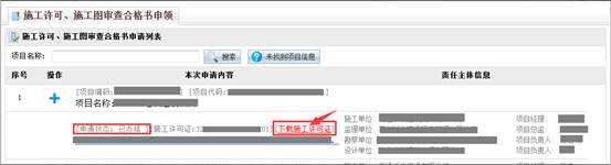 用戶可在“工程項目建設施工許可并聯申報系統”中查詢施工許可、質量報監、安全報監等業務辦理狀態,審批結束后,點施工許可證號可下載、打印施工許可電子證書。