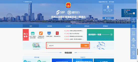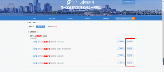 在“一網通辦首頁搜索框中輸入“施工許可”相關關鍵字后,點擊搜索