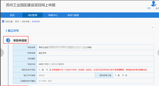 1.3.4.      填寫施工許可階段的申請表完成后提交后臺審核。