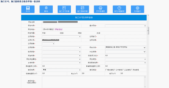 3、施工許可階段申請表中部分信息可編輯修改。
