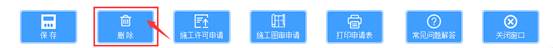施工許可申請刪除需在申請未提交的前提下刪除。質監、安監、施工許可中有任一通過審核就需要聯系管理部門退回后方能刪除申請數據。