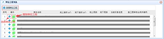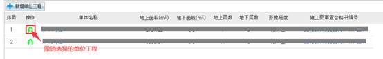 選擇本次施工許可申請所涉及的單位工程信息,已經在本系統中申請過施工許可證的單位工程不能重復選擇,如果本次申請的單位工程不在列表中可通過“新增單位工程”加入;