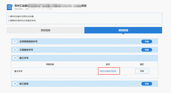 1.3.3.      在階段申報模塊找到“施工許可”階段,點擊“申報”按鈕