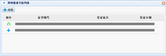 2、點擊用地批準手續、建設工程規劃許可、施工圖審查合格書后“+”(注圖1);在彈出窗口中點擊操作欄中“+”補選對應材料,點擊操作欄中撤銷選擇對應材料;點擊“新增”按鈕增加新的材料信息。