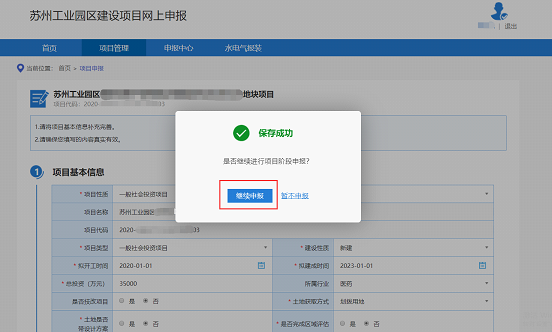 1.3.10.填寫完成之后,點擊保存按鈕,保存成功之后點擊“繼續申報”