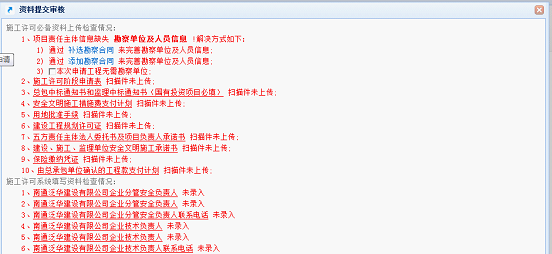 填報信息完整且資料齊備后點擊“施工許可申請”按鈕可以提交申請。提交申請時,系統將根據相關要求自動進行相關數據和資料的初步核驗,并給出核驗結果,必備內容如果缺失將不能提交。