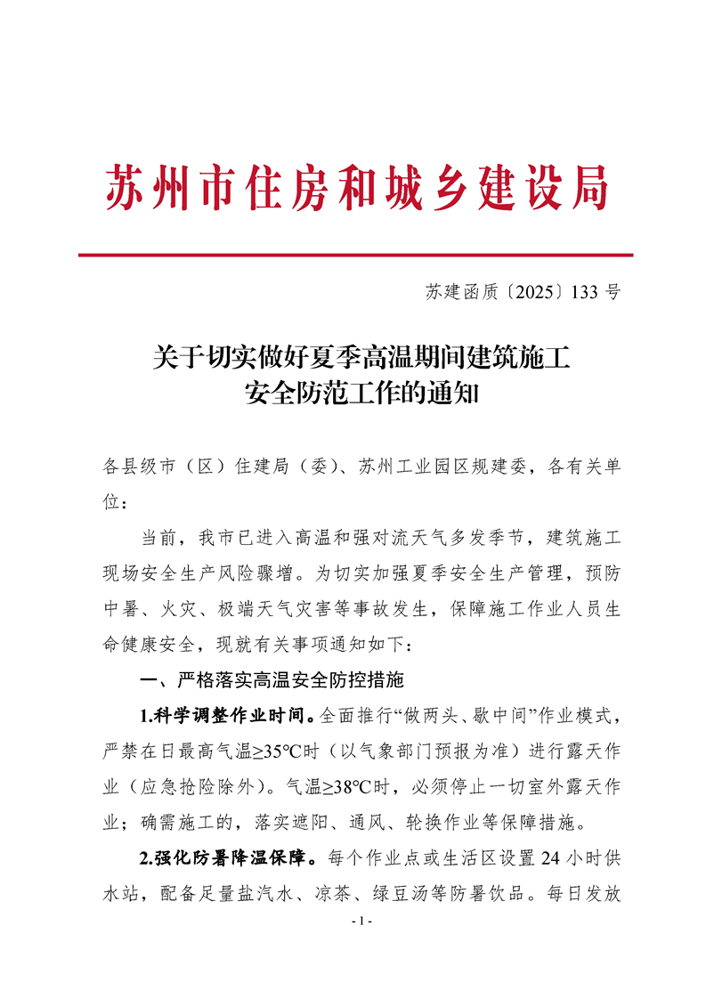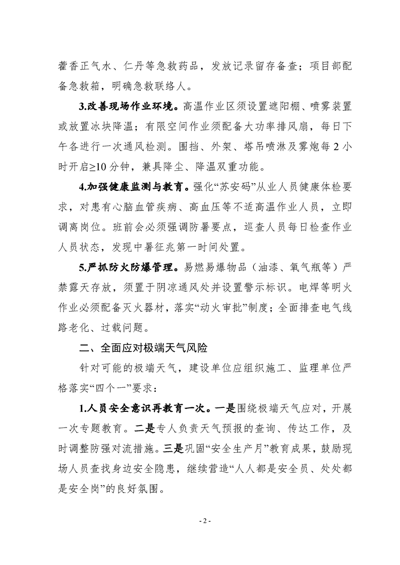 關于切實做好夏季高溫期間建筑施工安全防范工作的通知