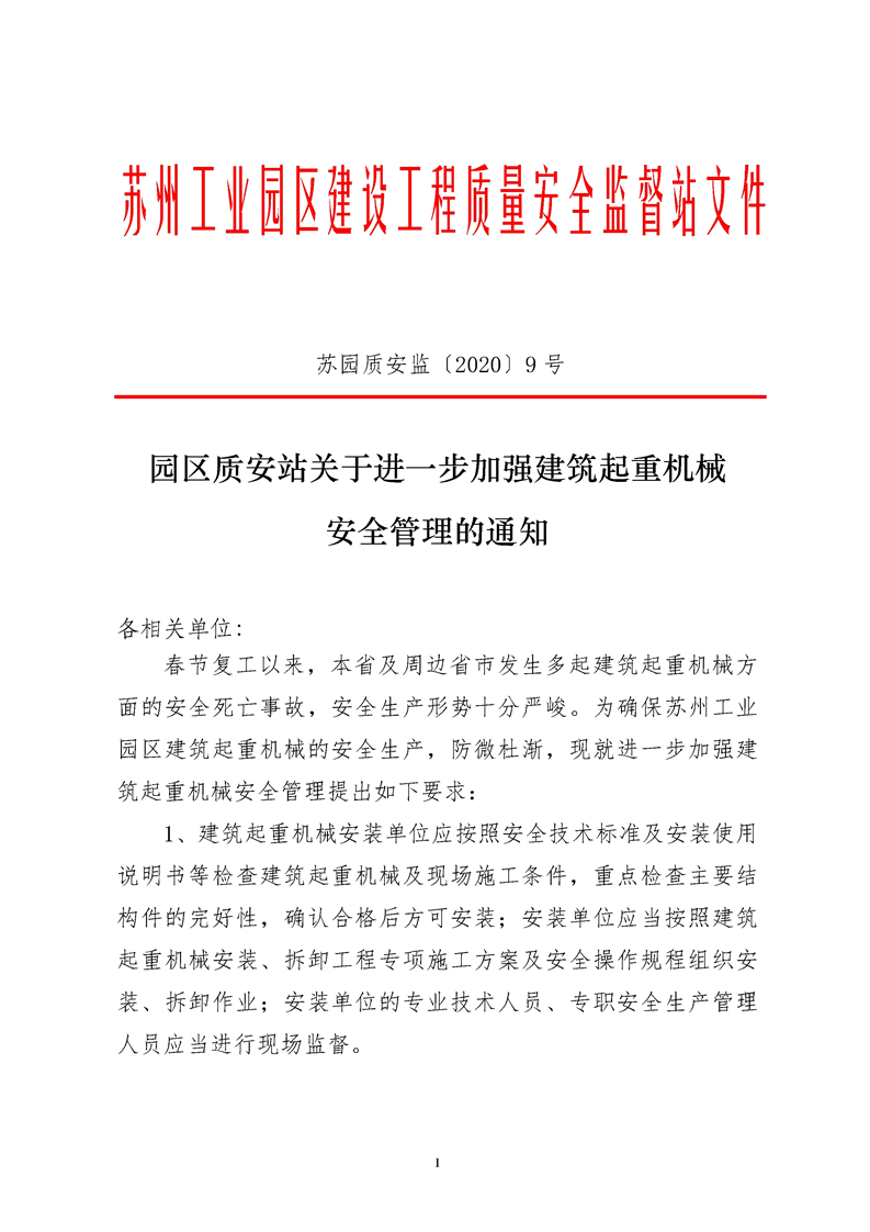 園區質安站關于進一步加強建筑起重機械安全管理的通知