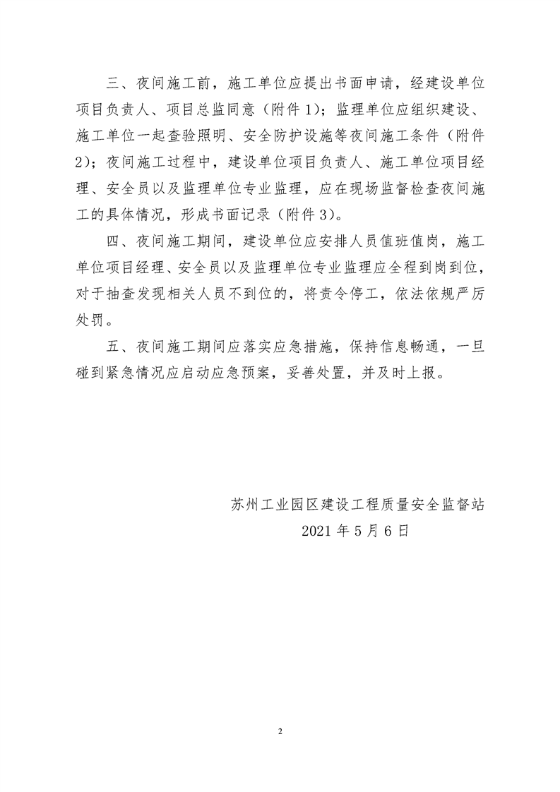 園區質安站關于進一步規范夜間施工安全管理的通知