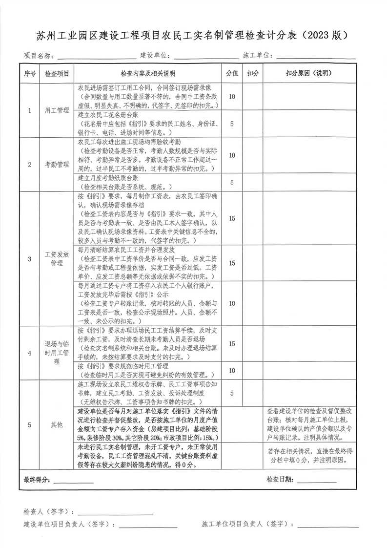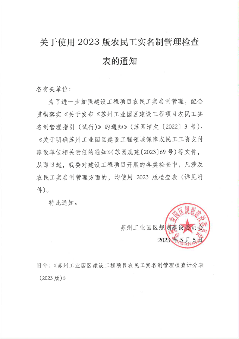 關(guān)于使用2023版農(nóng)民工實(shí)名制管理檢查表的通知