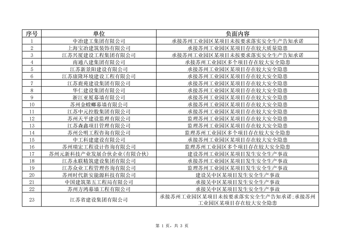 蘇州工業園區建筑施工安全生產告知承諾負面清單