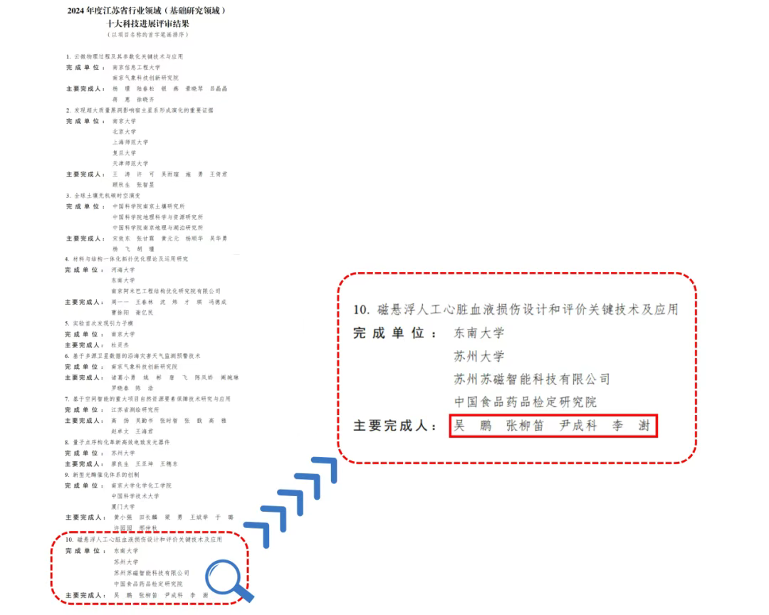 “磁懸浮人工心臟血液損傷設計和評價關鍵技術及應用”項目由東南大學、蘇州大學、蘇磁科技與中國食品藥品檢定研究院聯合攻關,解決了人工心臟血液損傷難以量化評估的技術瓶頸,體現了我國在高端醫療裝備核心技術領域的自主創新實力,充分彰顯了產學研協同創新的成效。