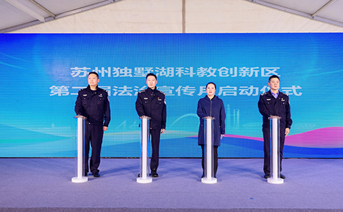 以法治院校文藝匯演活動為契機,蘇州獨墅湖科教創新區第二屆法治宣傳月活動正式啟動。此次活動以“法治護航陽光校園”為主題,采用法治文藝匯演、法治知識競賽、法治市集游園會、法治專題講座、平安院校線上答題等多種形式,進一步強化高校學生法治觀念,樹立法治意識。