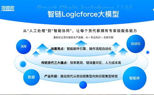 海管家智鏈logicforce大模型聚焦貨代業(yè)務(wù)全流程,覆蓋咨詢、訂艙、放提、配艙、報關(guān)、保險等關(guān)鍵業(yè)務(wù)場景,通過整合提單放單、訂艙確認(rèn)、報關(guān)單證、投保文件、裝箱清單、國際貿(mào)易數(shù)據(jù)及貿(mào)易條款等多維度信息,實現(xiàn)對貨代領(lǐng)域內(nèi)容的精準(zhǔn)解析、業(yè)務(wù)流程的高效聯(lián)動以及客戶咨詢的智能回復(fù),為貨代行業(yè)智能化升級提供了完整的技術(shù)解決方案。該模型通過技術(shù)創(chuàng)新驅(qū)動的業(yè)務(wù)模式升級,提升了國際物流服務(wù)的效率和質(zhì)量,不僅為企業(yè)自身發(fā)展注入了強勁動力,也是人工智能技術(shù)在傳統(tǒng)優(yōu)勢產(chǎn)業(yè)的成功應(yīng)用,有力推動了人工智能產(chǎn)業(yè)與實體經(jīng)濟的深度融合,為構(gòu)建現(xiàn)代化產(chǎn)業(yè)體系提供了重要支撐。