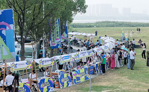 區內高校、企業帶來非遺作品、輕食飲品、休閑文旅、運動裝備、文創周邊等湖畔市集攤位吸引了不少市民停留駐足、拍照打卡。