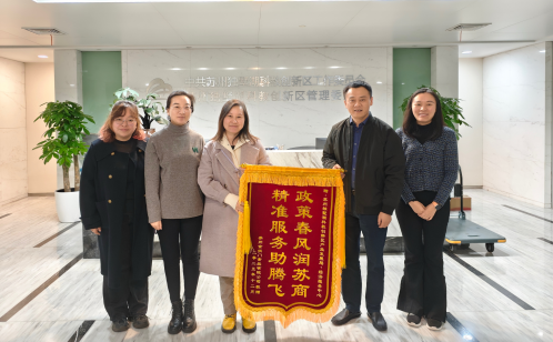 12月10日,蘇州金拱門食品有限公司負(fù)責(zé)人專程來到蘇州獨(dú)墅湖科教創(chuàng)新區(qū)管委會(huì),送來“政策春風(fēng)潤蘇商 精準(zhǔn)服務(wù)助騰飛”的錦旗,表達(dá)對(duì)蘇州獨(dú)墅湖科教創(chuàng)新區(qū)精準(zhǔn)高效服務(wù)、助力企業(yè)發(fā)展的衷心感謝。