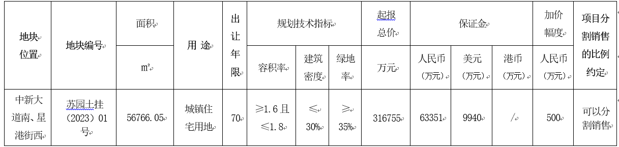蘇園土掛(2023)01號地塊的特別說明事項詳見《蘇州工業園區國有建設用地使用權網上掛牌出讓須知》。