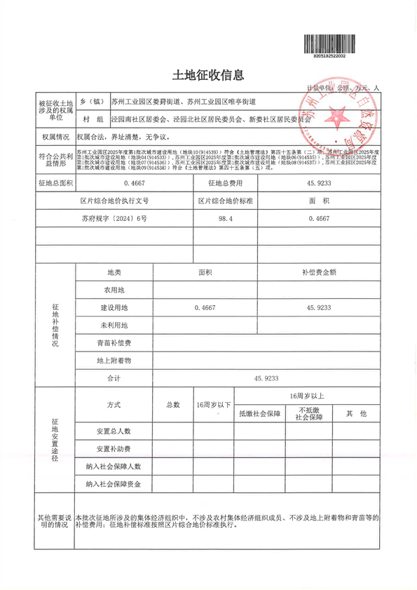蘇州工業(yè)園區(qū)2025年度第1批次城市建設(shè)用地-報(bào)批材料