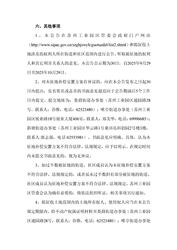 蘇州工業(yè)園區(qū)管理委員會(huì)征地補(bǔ)償安置方案公告(蘇工園征補(bǔ)安置〔2025〕006號(hào))