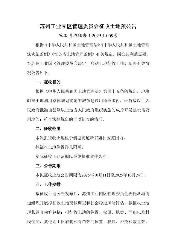 蘇工園擬征告〔2025〕009號--征收土地預公告