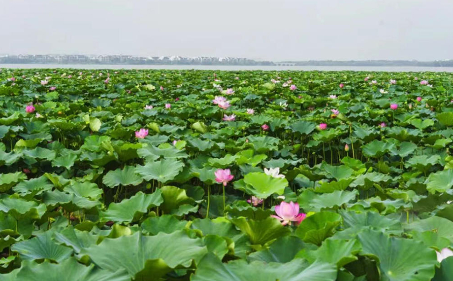 到半島臨湖邊,看滿池蓮花若隱若現(xiàn),感受夏日花海的朦朧仙氣之美。