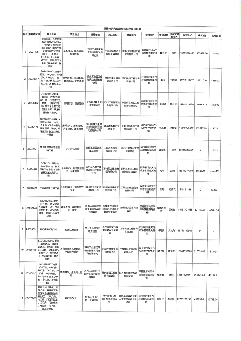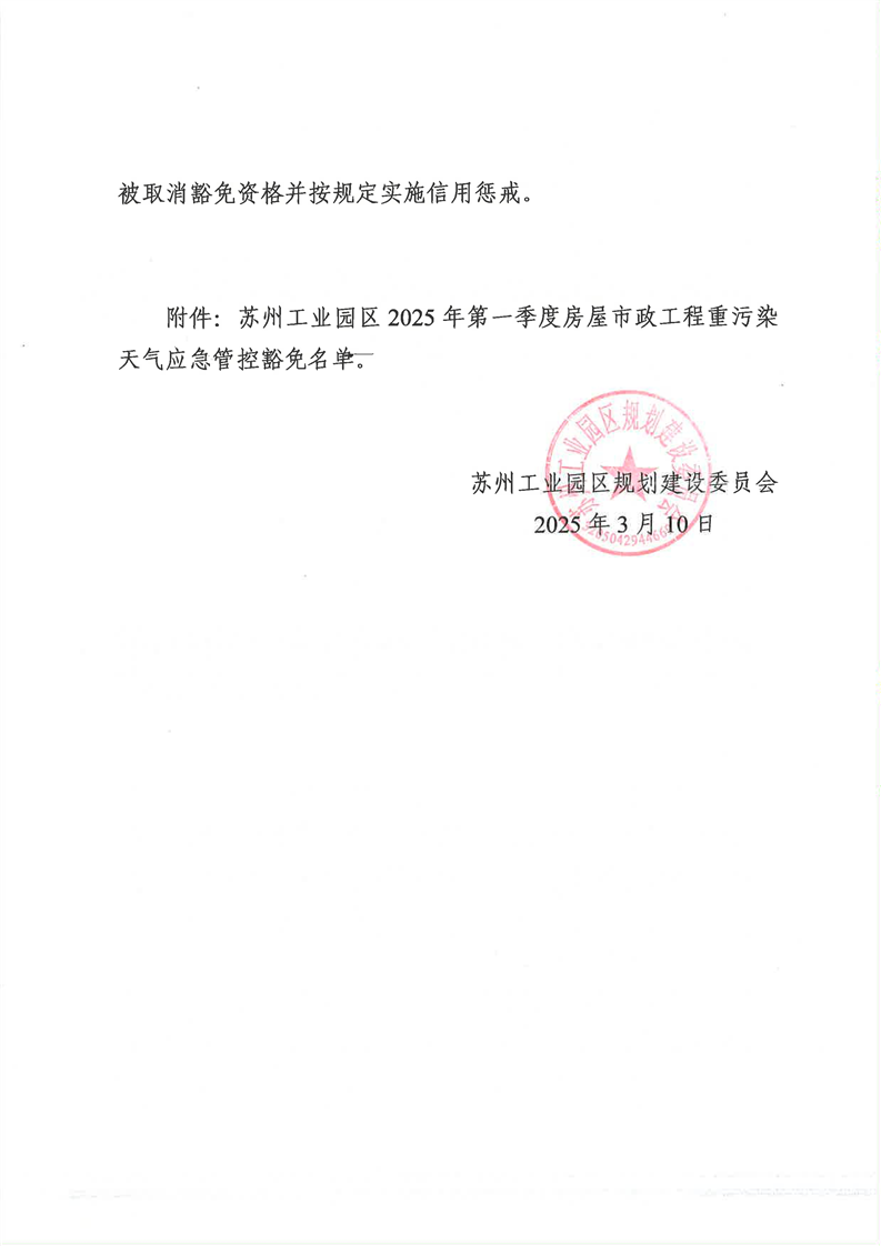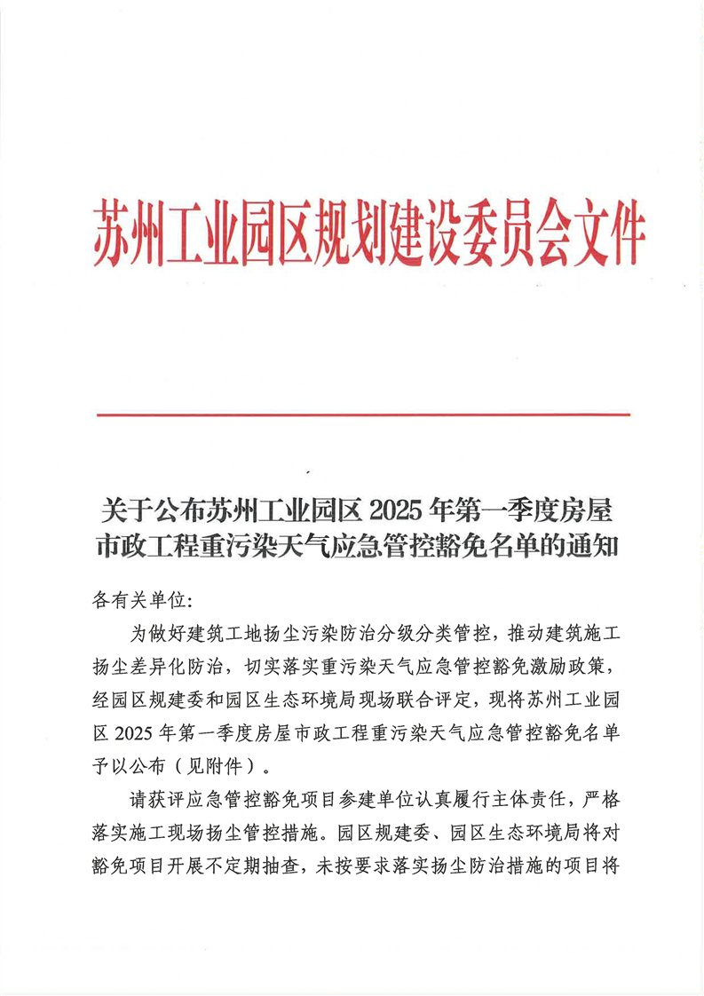 關于公布蘇州工業園區2025年第一季度房屋市政工程重污染天氣應急管控豁免名單的通知