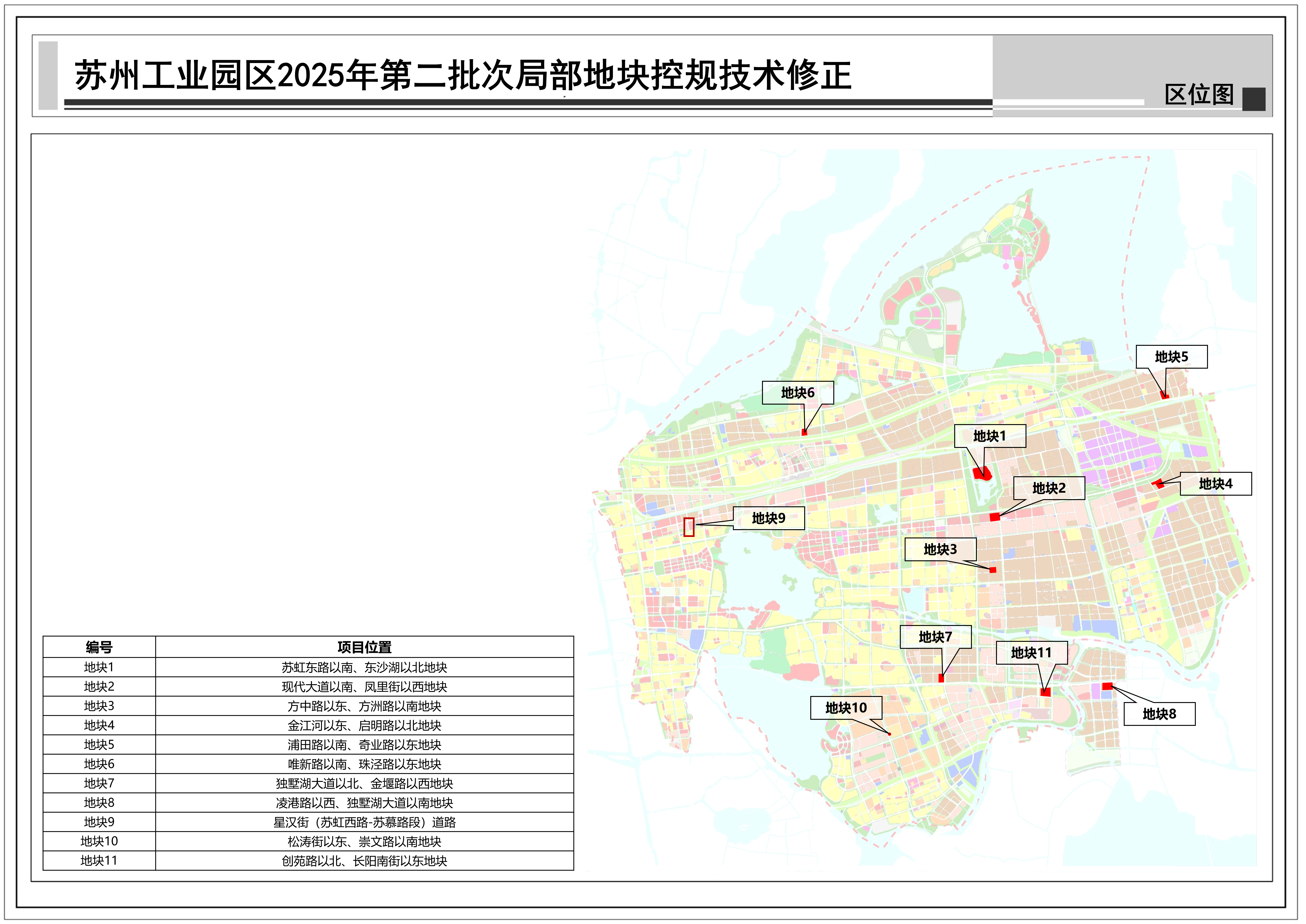 蘇州工業(yè)園區(qū)2025年第二批次局部地塊控規(guī)技術(shù)修正:共包括11個地塊,總用地面積約0.75平方公里,詳見附圖區(qū)位圖。