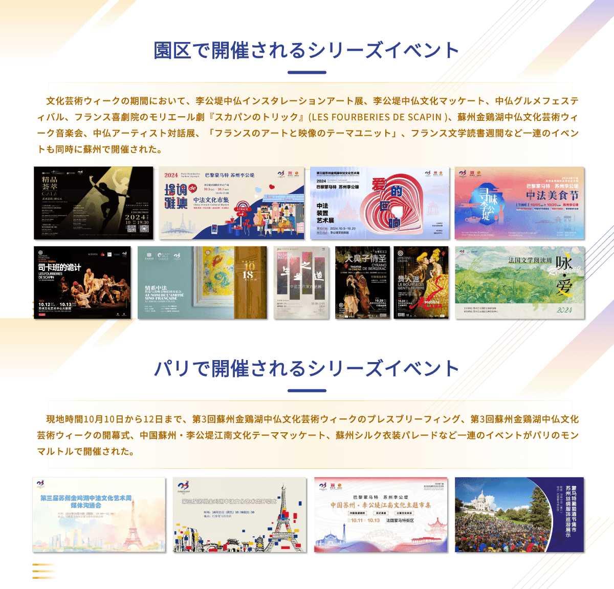 現(xiàn)地時(shí)間10月11日の夜、2024第3回蘇州金鶏湖中仏文化蕓術(shù)ウィークはパリのモンマルトルで幕を開けた。パリ第18區(qū)政府、パリコンベンション観光局、パリの大學(xué)、博物館、銀行、投資ファンド、文化観光企業(yè)からの100人以上のゲストが一堂に集まり、交流と協(xié)力について共に検討した。 イベントでは、園區(qū)文化體育観光局の責(zé)任者は蘇州及び蘇州工業(yè)園區(qū)の地理的優(yōu)位性、文化的背景、産業(yè)クラスター、投資環(huán)境、政府サービスなどについて詳しいプロモーションを行った。 會(huì)場では、パリ第18區(qū)政府、パリコンベンション観光局、仏中協(xié)力交流協(xié)會(huì)、モンマルトル商會(huì)、テイラーアーティスト基金會(huì)の代表が次々と発言した。また、現(xiàn)場では昆曲のパフォーマンスと蘇州工業(yè)園の寫真展も行われた。 今回の蘇州金鶏湖中仏文化蕓術(shù)ウィークは10月5日から10月20日までパリと蘇州の両地で同時(shí)に開催され、合計(jì)13回...
