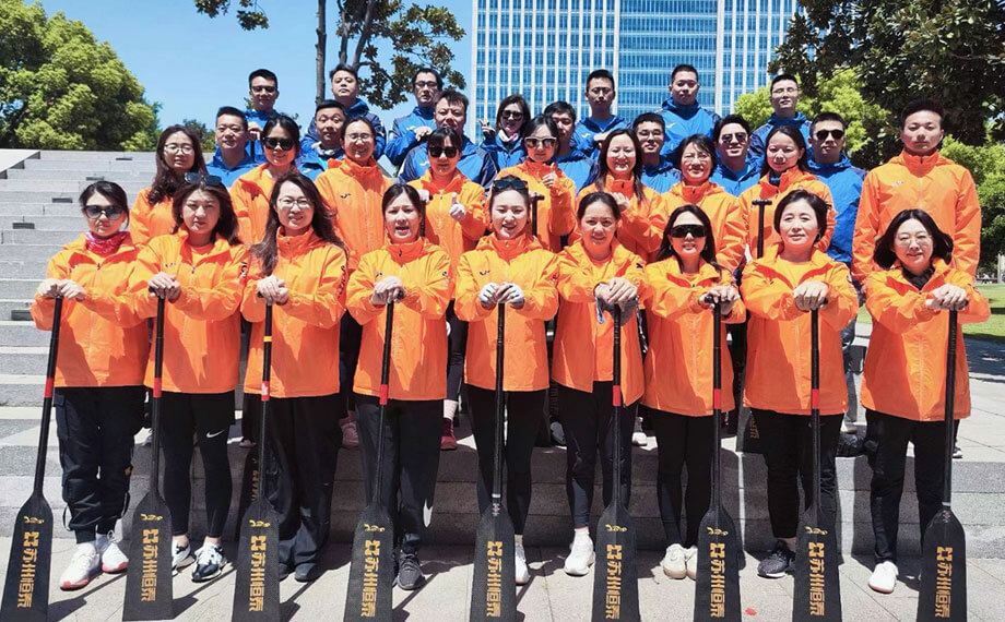 恒泰ドラゴンボートチームは今年の3月に設立され、蘇州恒泰グループの商業運営、産業サービス、人材居住などのビジネスセクションの主力メンバーから構成されるチームである。現在、男子と女子の選手がそれぞれ16名ずついる。今年の金鶏湖ドラゴンボートレースでは、蘇州恒泰グループは12人の男子企業グループと12人の女子オープングループの2種目に參加した。