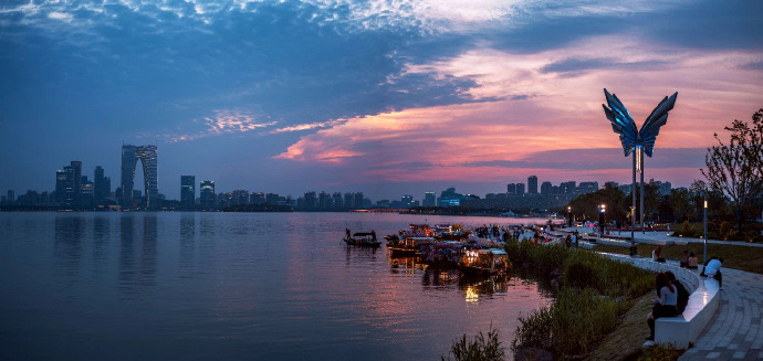 園區が精心に創り出した「蕓術?文化?公共生活」が融合する都市ランドマークである金鶏湖右岸ラウンジは、蘇州の繊細な趣きと開放的な國際的気質を兼ね備えている。「右岸の真夏の夜」は「ボーダレスアート」をコンセプトに、イタリア、スペイン、ベネズエラなど海外の友人の多文化表現がある上に、地元アーティストの創作もあり、さらには研究開発従事者や青少年など様々な人々が參加している。その後、毎週土曜日19:30-20:30(雨天中止)にジャズ、フォーク、ポップスなど多彩なテーマ公演が続々登場予定である。