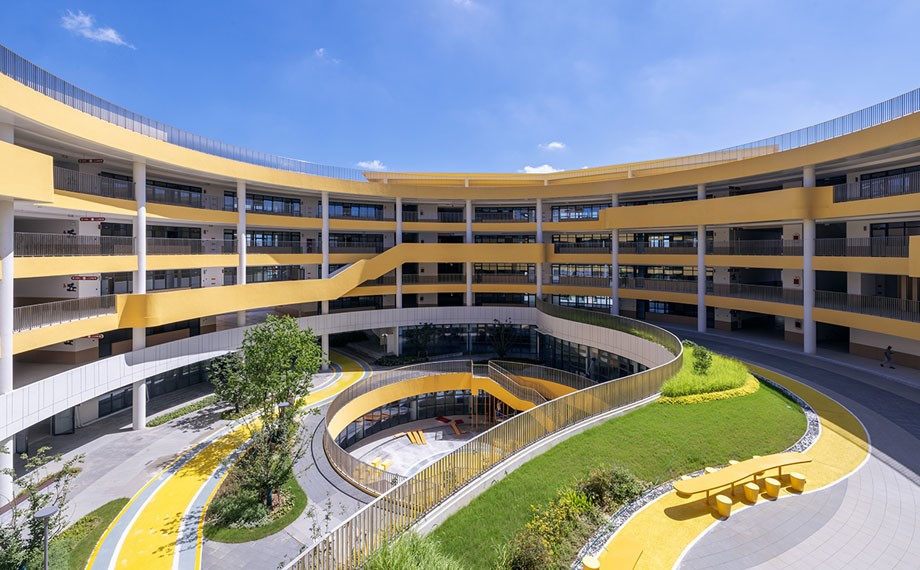 蘇州大學付屬中學勝浦路キャンパスは敷地面積約130ムー、建築面積12.8萬平方メートルで、2期に分けて建設され、総投資額は約7億元に上る。20學級60クラスの規模を想定した設計で、園區の教育資源を効果的に拡大し、人々が質の高い教育資源を求める期待に応える強力な支えとなっている。