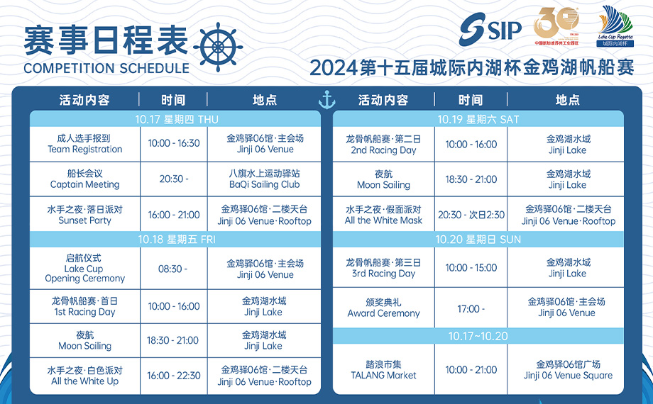 本屆賽事以“潮見蘇州,乘風時刻”為主題,從專業辦賽、公益惠民、時尚潮流、城市賦能四個場景講述帆船故事,積極融合帆船運動和城市特色,持續擦亮水上運動的城市新名片。賽事將持續至10月20日。