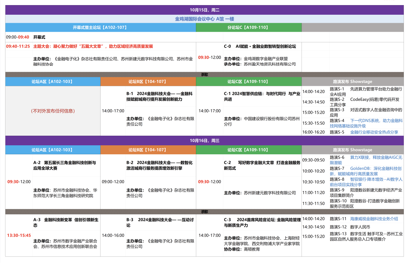 第六屆中新(蘇州)數(shù)字金融應(yīng)用博覽會 | 2024金融科技大會論壇議程概覽