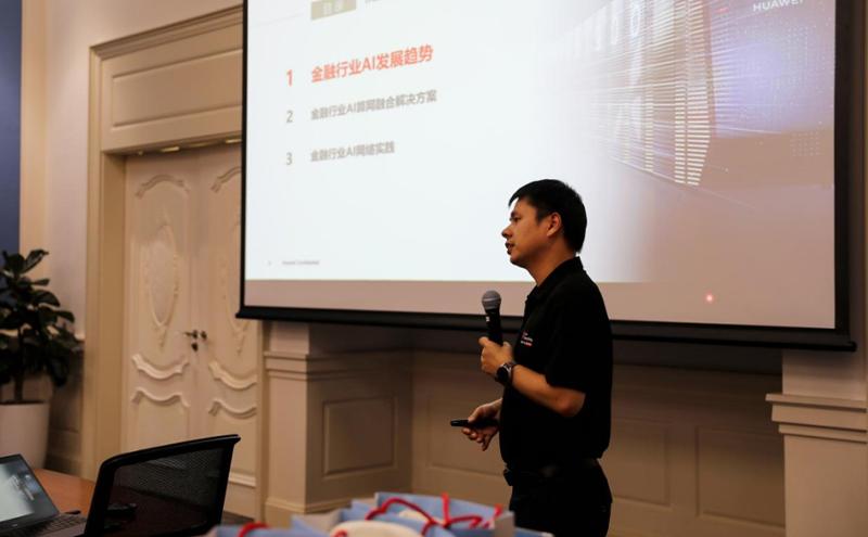 活動現場,華為江蘇政企數通解決方案銷售部部長蔡國棟在致辭中表達了AI技術在金融行業中的重要性以及推動行業智能化轉型的必要性。