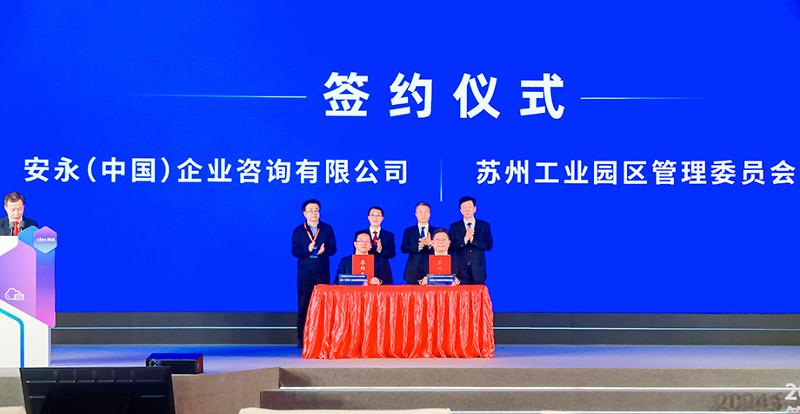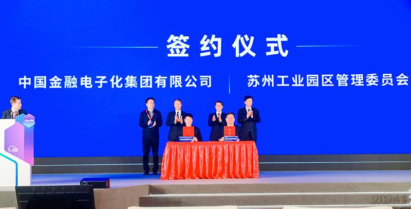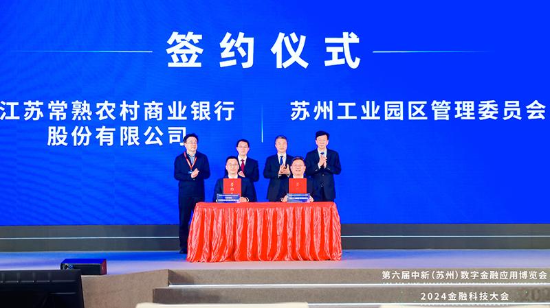 開幕式現場,蘇州工業園區管理委員會分別與中國金融電子化集團有限公司、安永(中國)企業咨詢有限公司、東吳人壽保險股份有限公司、江蘇常熟農村商業銀行股份有限公司進行戰略合作簽約,常熟農商銀行科創金融中心正式揭牌,多方資源匯聚,多條線合作持續加強。