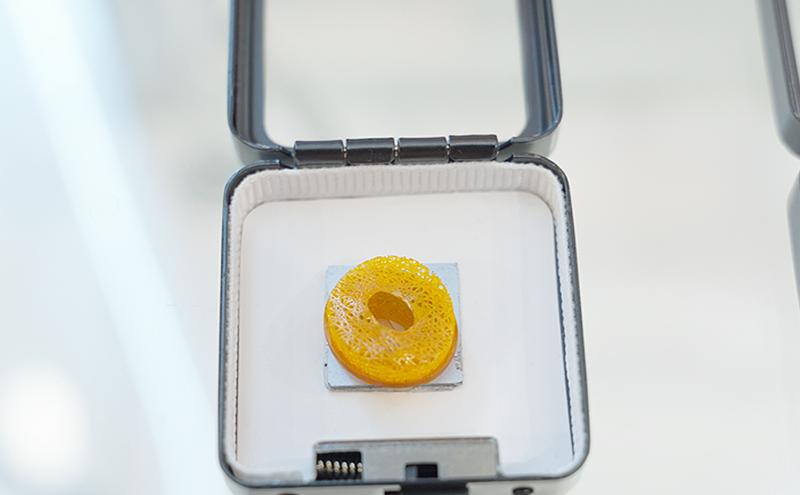 展臺(tái)中,一塊小小的陶瓷超材料模型玲瓏剔透,而其內(nèi)部則是肉眼無(wú)法觀察的蜂窩狀結(jié)構(gòu)。“在微納應(yīng)用下,我們可以模擬展現(xiàn)一些新材料的結(jié)構(gòu)特性,從而助力新材料的研發(fā)。目前,公司與多家客戶達(dá)成了合作,可以輔助實(shí)現(xiàn)一些全新課題的研發(fā)。譬如這款陶瓷超材料的結(jié)構(gòu)打印,就為不同結(jié)構(gòu)的新材料研發(fā)提供了新的可能性。”周禮俊說(shuō)。