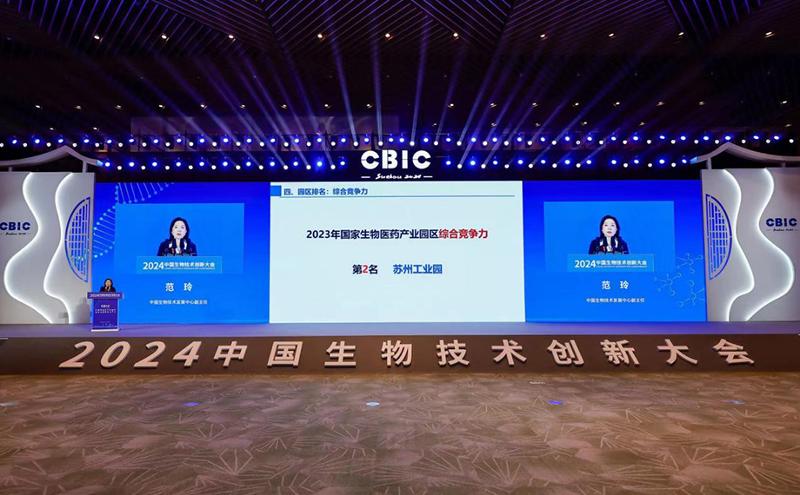 大會發布了《2024中國生物醫藥產業園區競爭力評價及分析報告》,蘇州工業園區排名獲近三年最好成績,綜合競爭力穩居全國第二,產業競爭力、人才競爭力、合作競爭力3項位列全國第一。同時,大會還設置生物醫藥成果集中展示展覽區,呈現我國重大原創性及顛覆性成果、蘇州市及園區生物醫藥產業、國家生物藥技術創新中心亮點創新成果等生物技術領域蓬勃發展的繁榮景象。