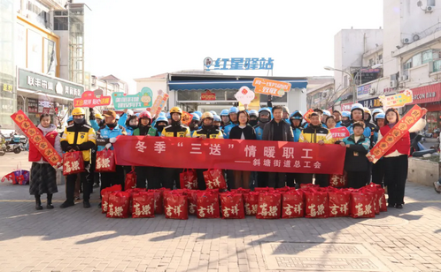 街道黨工委副書記、總工會主席蔡楓一行走訪慰問高齡勞模,向他們致以新春的祝福,感謝他們長期以來為社會發展作出的貢獻,并詳細詢問勞模的生活情況和身體健康狀況,叮囑他們要保重身體。在金浦九號聯合工會、斜塘市政、斜塘物業,斜塘街道總工會一行與職工們親切交流,真切的關懷、知心的話語,讓職工們在濃濃寒冬里感受到溫暖和關愛。聚焦新就業群體、新市民勞動者,街道總工會還走訪慰問了餓了么、美團、叮咚、順豐、圓通等企業一線職工,為他們送上暖“新”禮包,鼓勵他們發揚積極主動、擔當作為的精神,用勤勞的雙手創造幸福美好生活。此次“冬季‘三送’情暖職工”慰問活動共惠及一線職工、市民勞動者、就業群體、困難職工、勞模等1500余人。