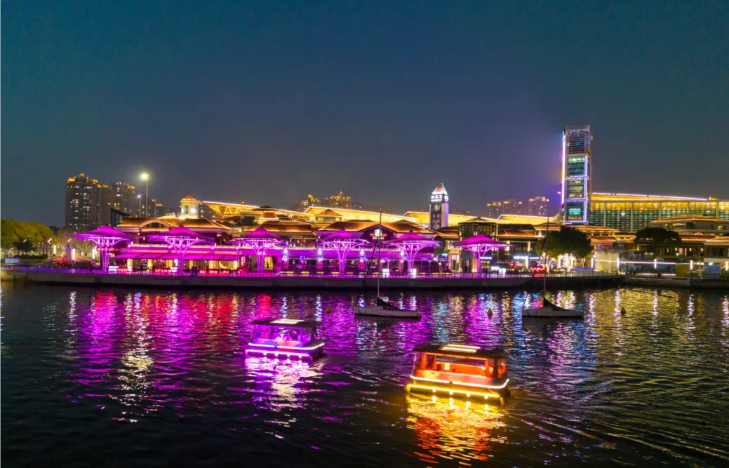 金雞湖水上公共巴士為游客夜游提供了極大的便利,免費開放至晚十點。與地鐵公交延長運營、部分停車場免費開放等政策相結(jié)合,為游客夜游、夜娛、夜食、夜購提供便利條件,充分釋放夜間消費潛能。