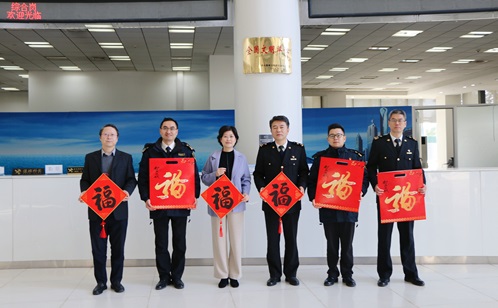 當(dāng)天,高貿(mào)區(qū)黨工委、管委會領(lǐng)導(dǎo)將春聯(lián)和福字送到了綜保大廈內(nèi)海關(guān)、稅務(wù)、行政審批局等一線服務(wù)部門工作人員手中,對他們的辛勤付出表示感謝,并送上新春祝福和誠摯問候。