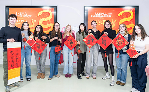 在SKEMA蘇州校區,來自五湖四海的留學生們全身心投入,沉浸式體驗了年味十足的寫福字、包餃子活動,在與中國傳統文化的交融中碰撞出了別樣的火花。留學生們在老師的悉心指導下蘸墨、落筆,一筆一劃間福字和春聯逐漸成型。他們筆下的每一個字符,透著對中國文化的熱愛,提前給春節添了滿滿的儀式感。
