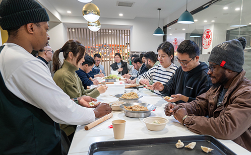 來自法國、俄羅斯、喀麥隆等國的40名留學生齊聚一堂,動手包制中國傳統美食—餃子,在老師耐心細致的示范下,認真學習每一個步驟。蘇州獨墅湖科教創新區黨工委委員、管委會副主任趙楨現場看望留學生們,向同學們送上了精心準備的福袋,并與大家親切交談。留學生們紛紛表示,通過這次活動不僅學會了包餃子的技藝,更深切感受到了中國傳統文化的魅力和中國人的熱情好客。