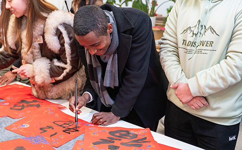 中國人民大學絲路學院的來自巴基斯坦、贊比亞、埃塞俄比亞等國家的留學生們,親身參與寫春聯、包餃子,不僅了解了中國傳統的春節風俗,近距離感受到中國文化的魅力,也體會到科教創新區對他們的滿滿真情。