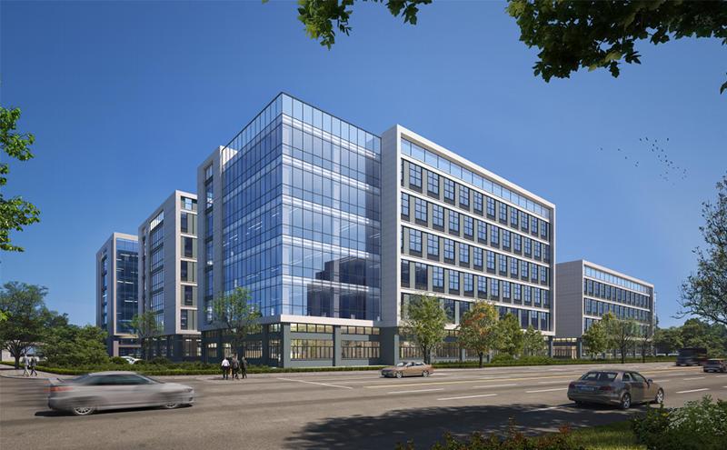 新項目計劃新建6棟5層工業廠房和若干輔房,總建筑面積89954.14平方米,綠地面積5500平方米,容積率由0.56提升至2.46。新園區以現代化高品質為標準,采用淺色石材顆粒涂料搭配玻璃幕墻,與周邊地塊形成統一的色彩效果。