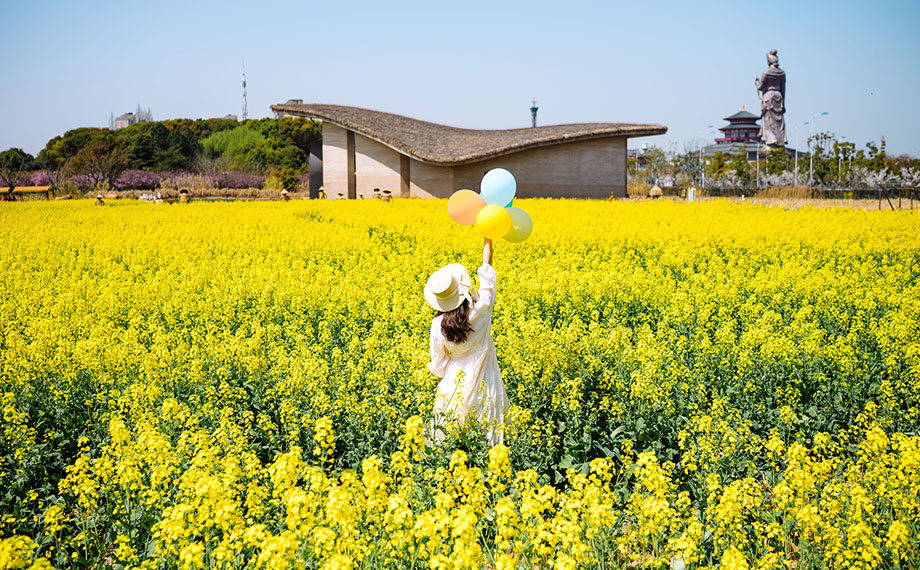 這個清明小長假,草鞋山考古遺址公園內(nèi)近20畝的油菜花田正值花期,簇簇小花“浮”在綠云之上,肆意綻放田間,一片絢爛金黃,釋放著春的生機(jī)與活力。