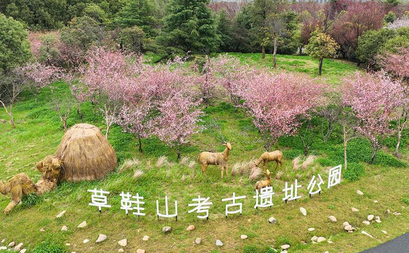 春日尋芳,草鞋山考古遺址公園自然也是不容錯過的打卡點(diǎn)位。灼灼綻放的迎客小毛桃、絢爛如云的垂絲海棠……春的氣息在一場場花事中日漸濃烈。