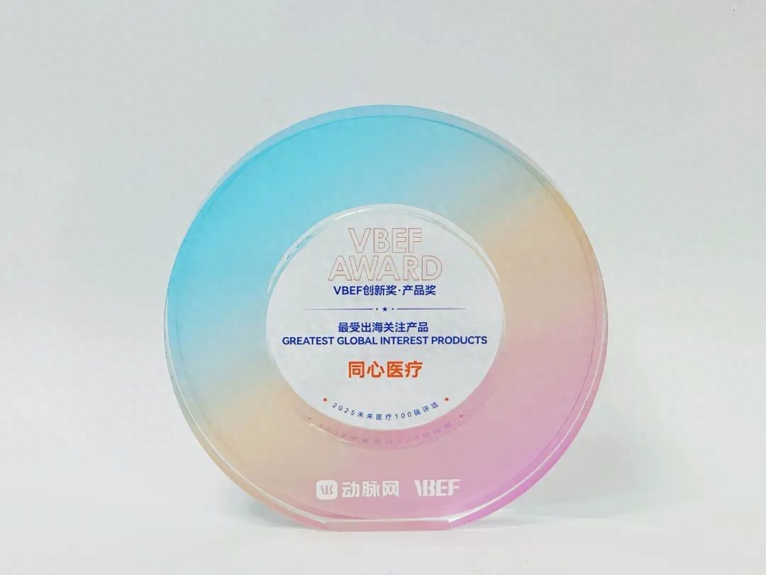 近日,動脈網2025未來醫療醫藥100強展會(VBEF)在蘇州國際博覽中心舉行。同心醫療自主研發的新一代全磁懸浮人工心臟,憑借在產品創新和海外臨床試驗進展方面的卓越表現,榮膺“未來醫療100強創新獎——最具出海關注產品”。