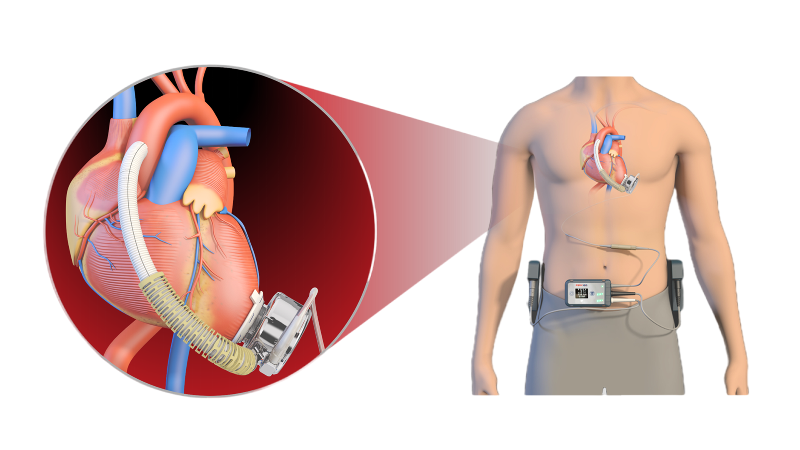 人工心臟學名“植入式左心室輔助系統”,由體內植入部件和體外攜帶部件組成,主要為進展期難治性左心衰患者血液循環提供機械支持,其核心部件是一個血泵,將血液從心臟引出,提升壓力后,輸送到主動脈,從而達到卸天然心臟負荷的功能,使天然心臟得到休息,同時補充了天然心臟泵血能力不足的問題。